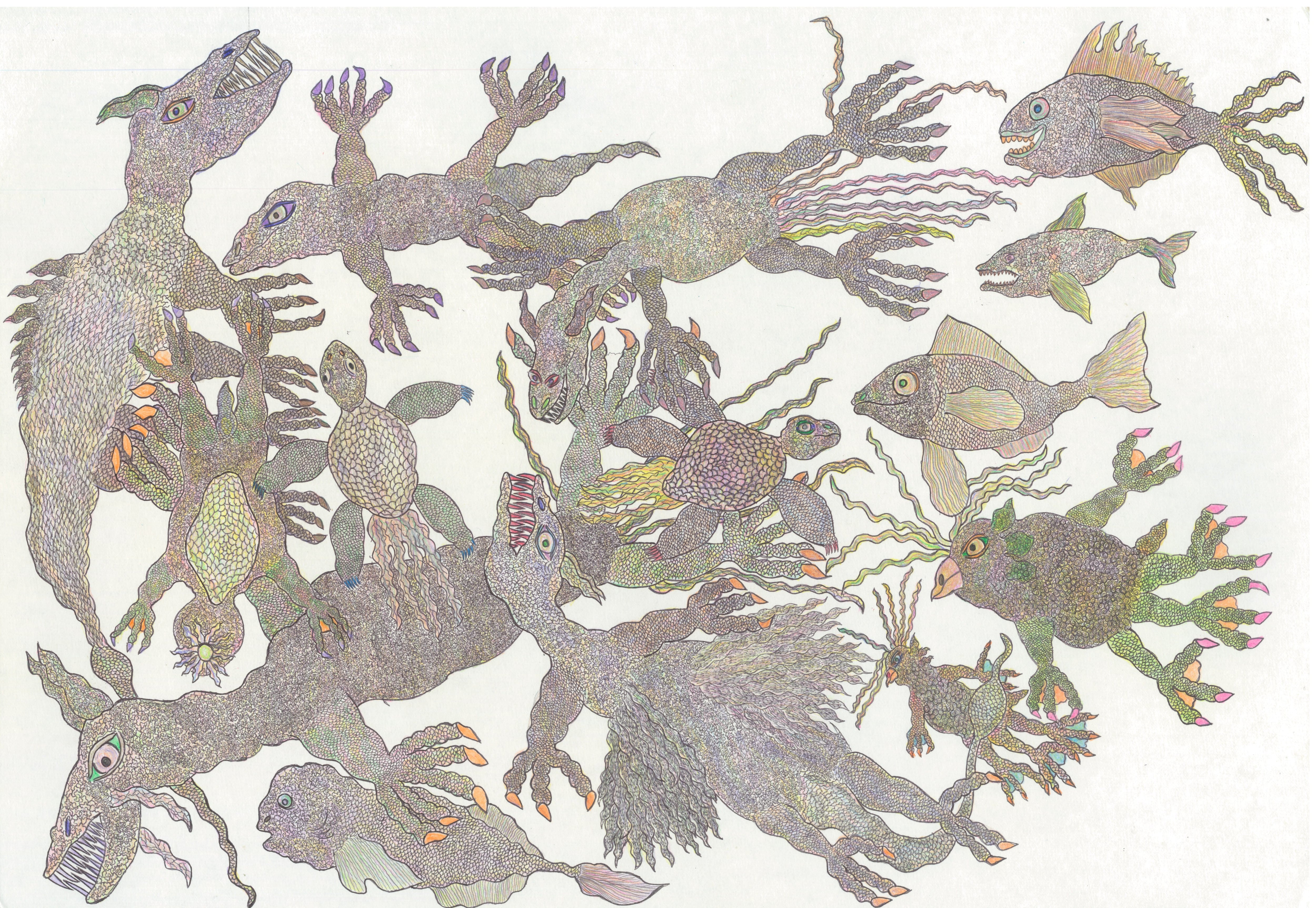 ペン・色鉛筆画「魚類3」