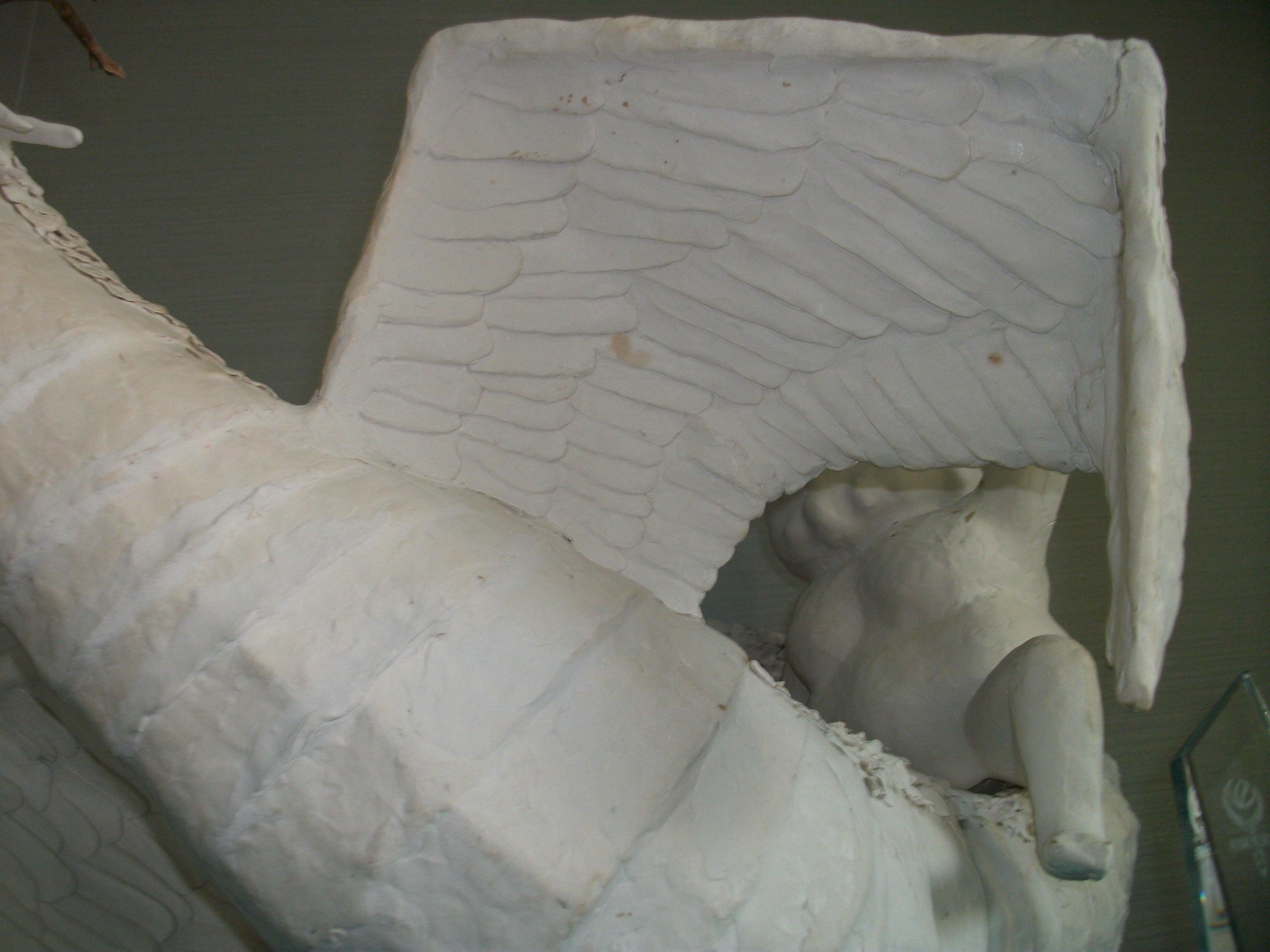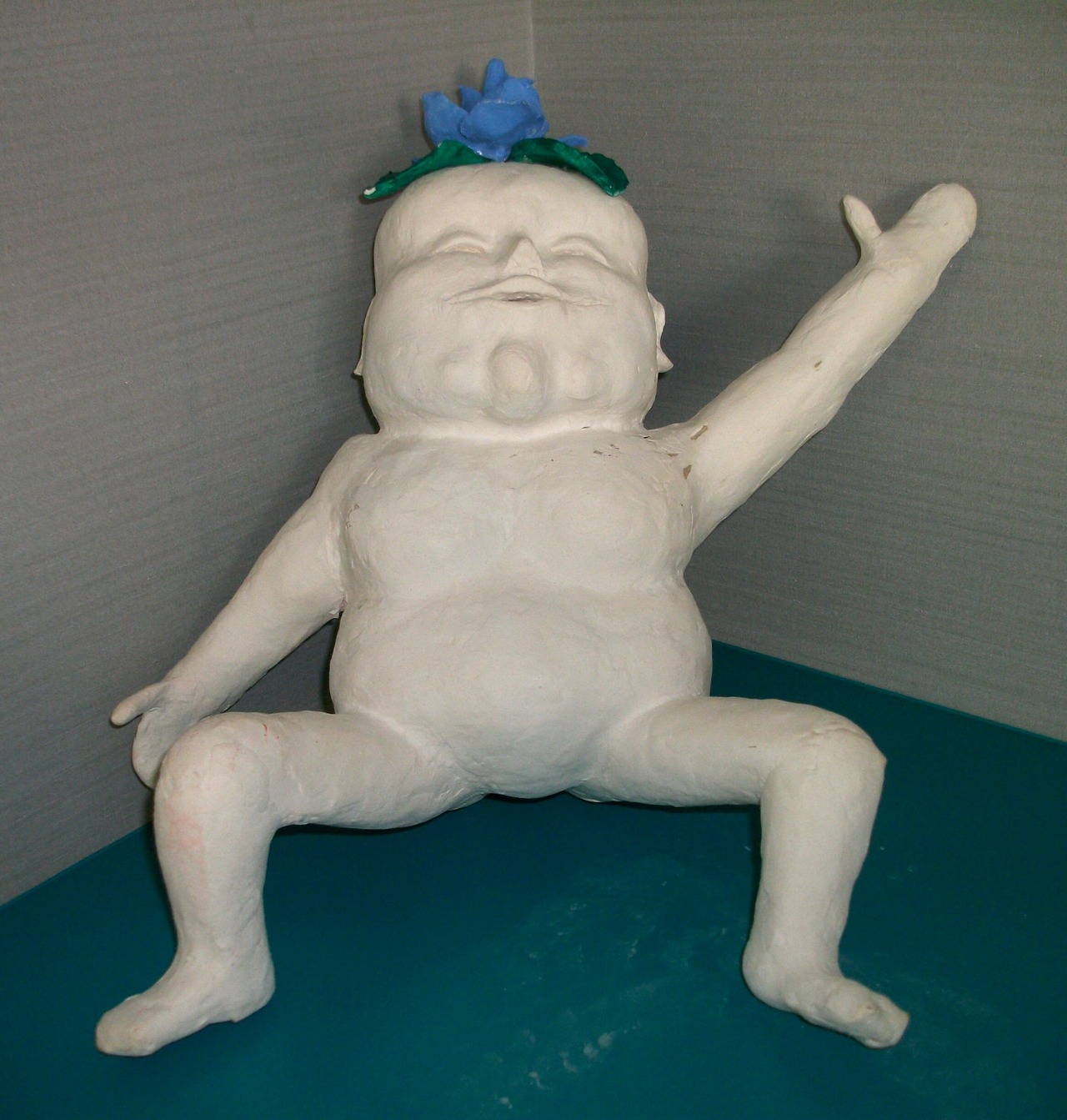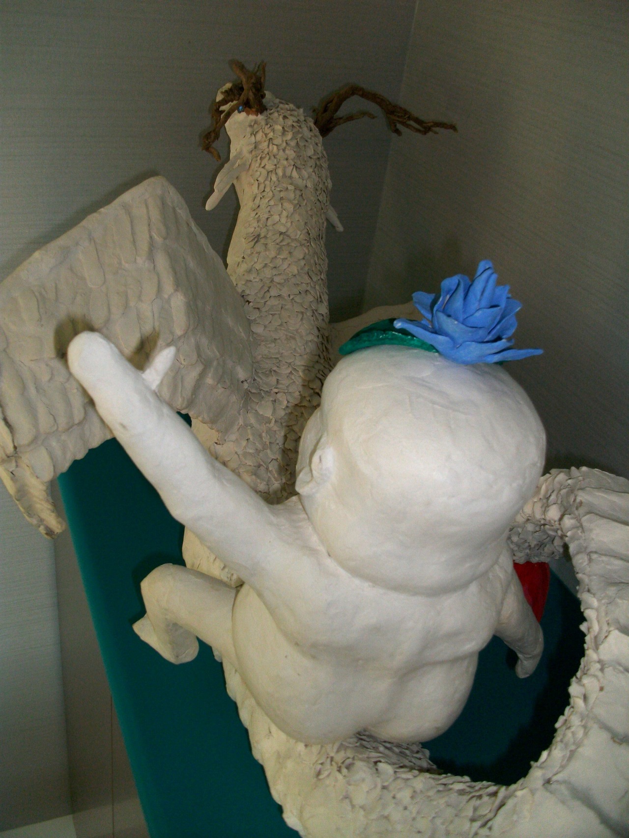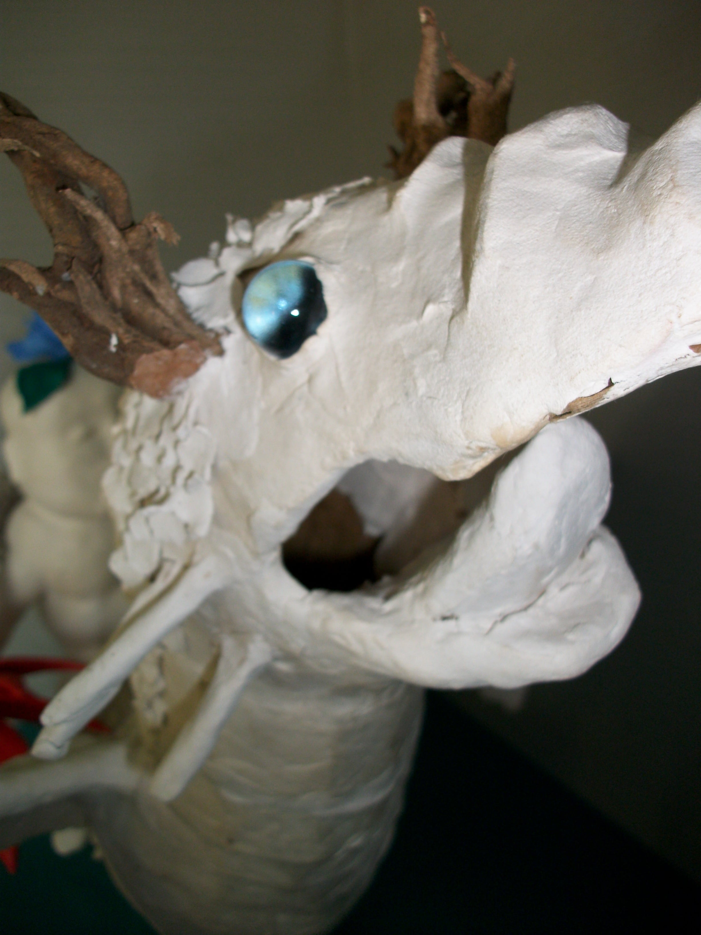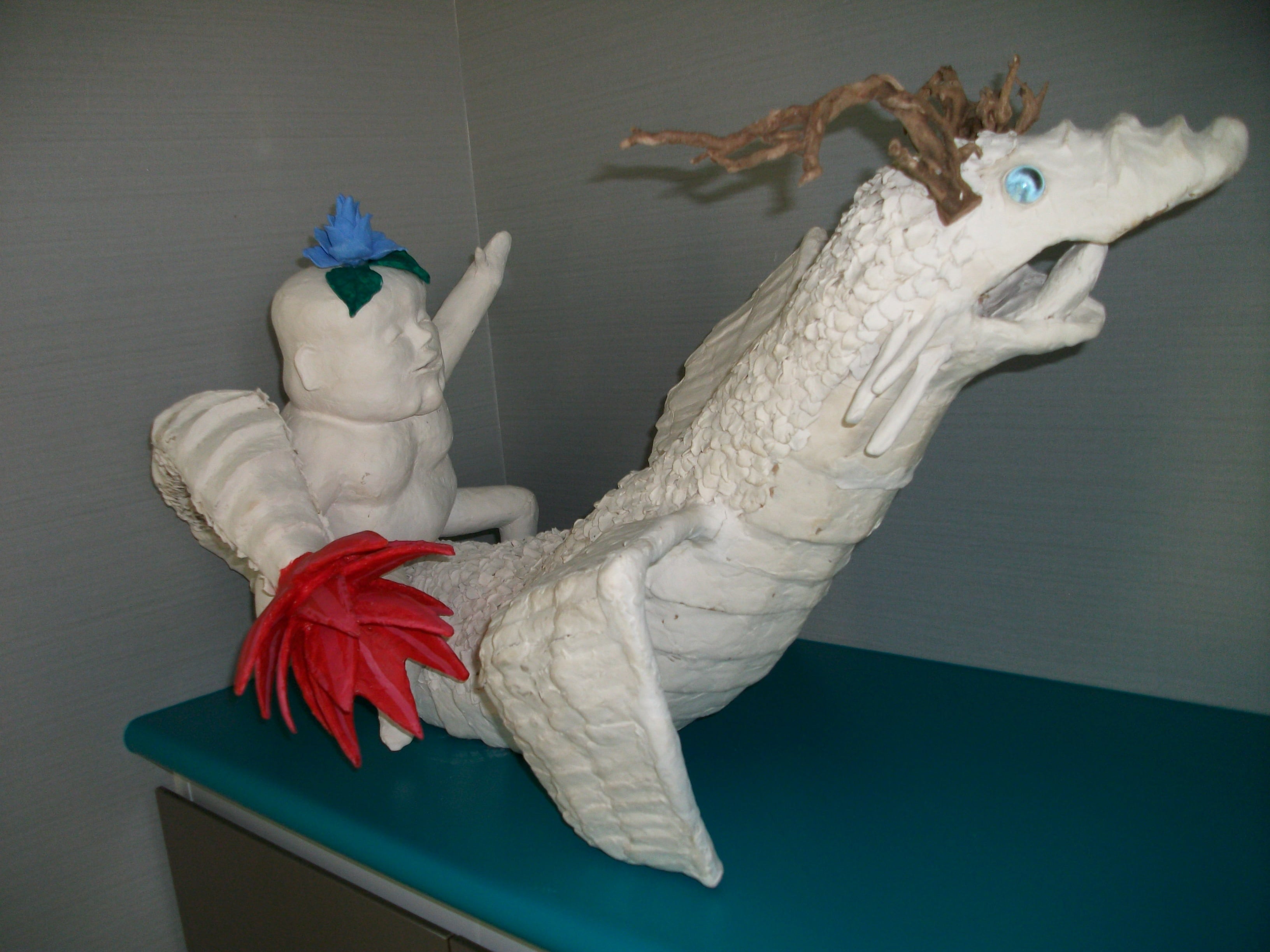 ・石粉粘土による作品です。芯材として段ボール、木材、割りばし等を使用しています。