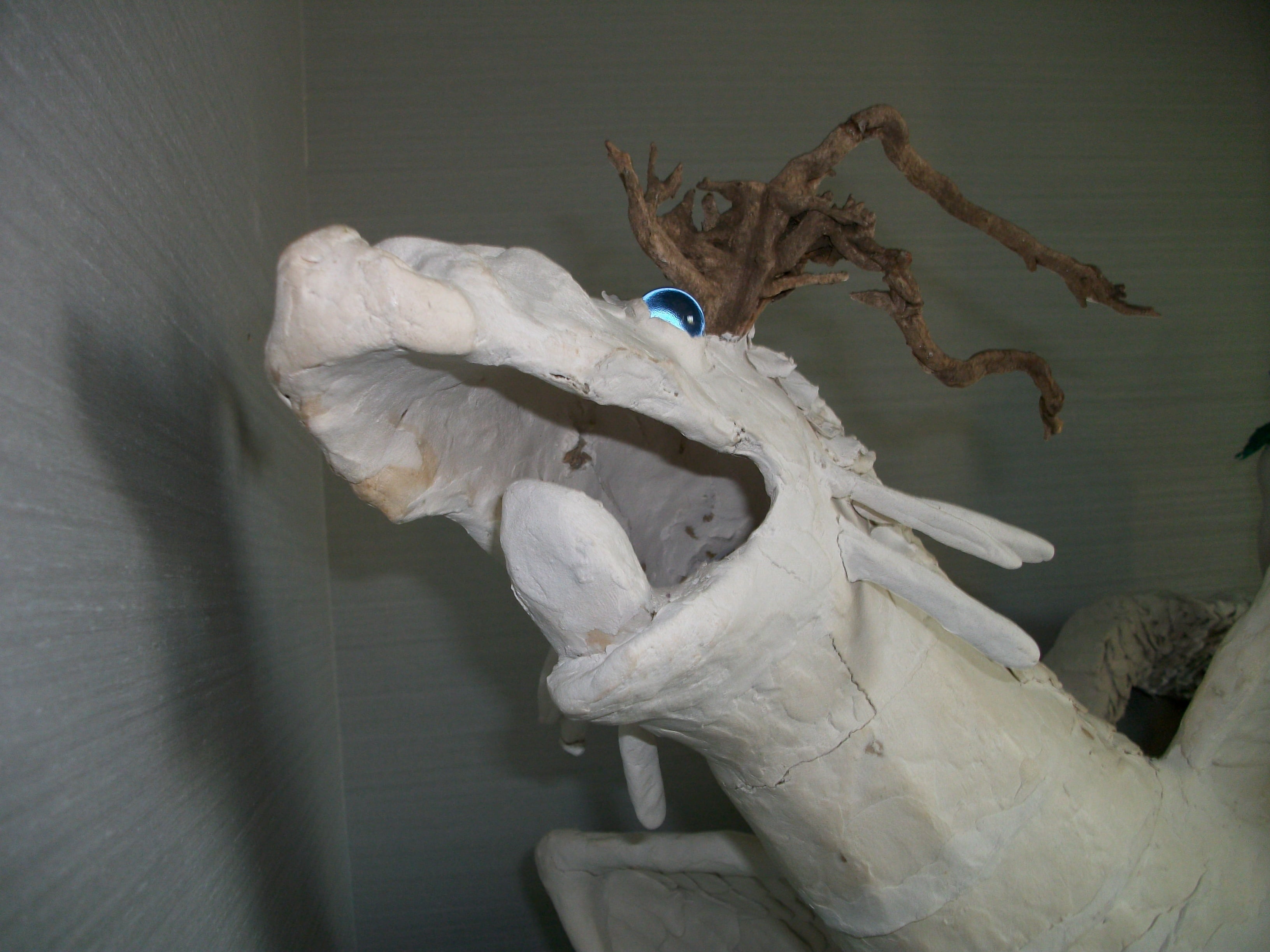 ・材質上、ひび割れが発生している箇所があるほか、竜の角部分の折れをボンドで補修したりしています。詳細は画像をご覧ください。