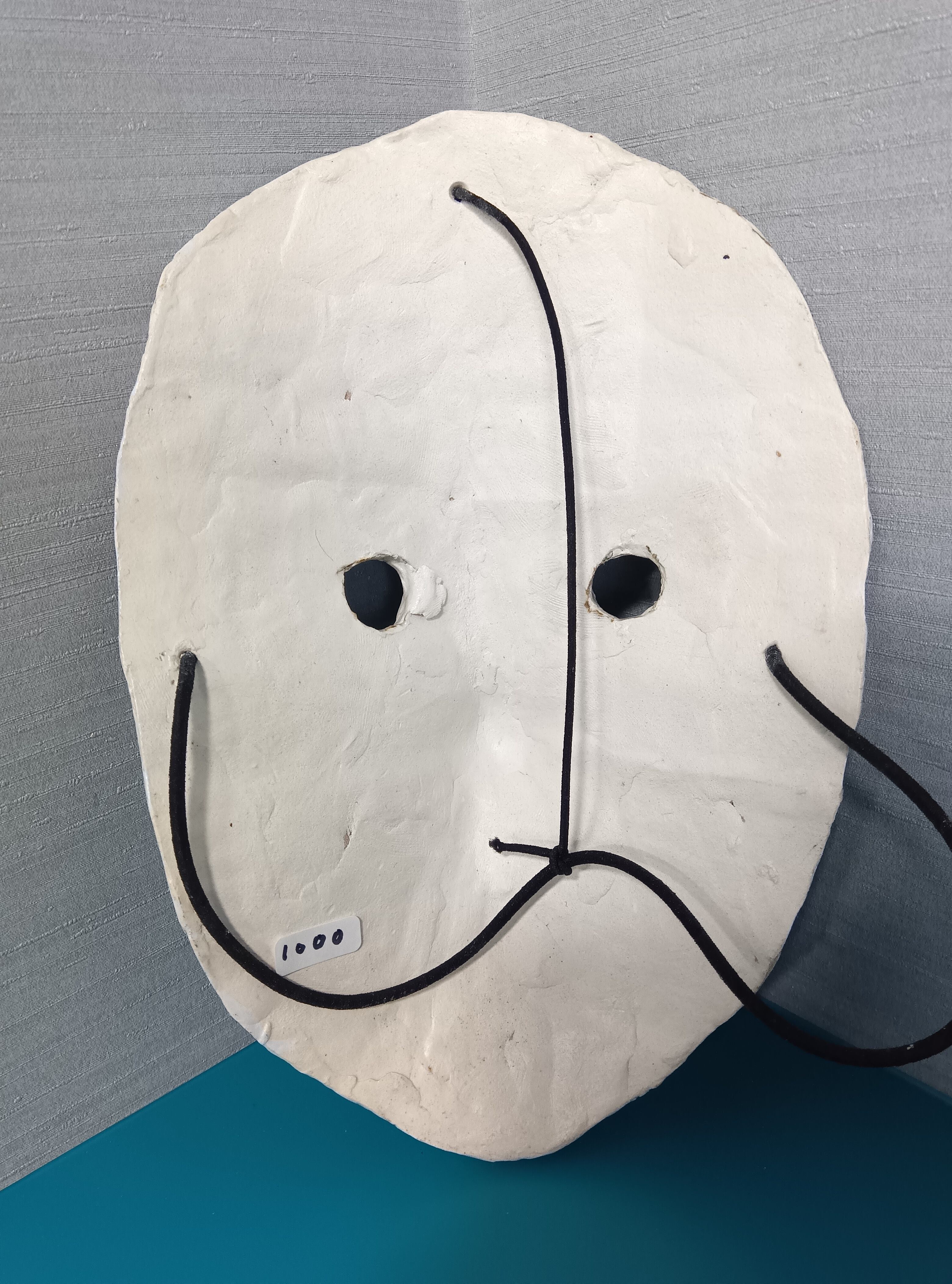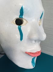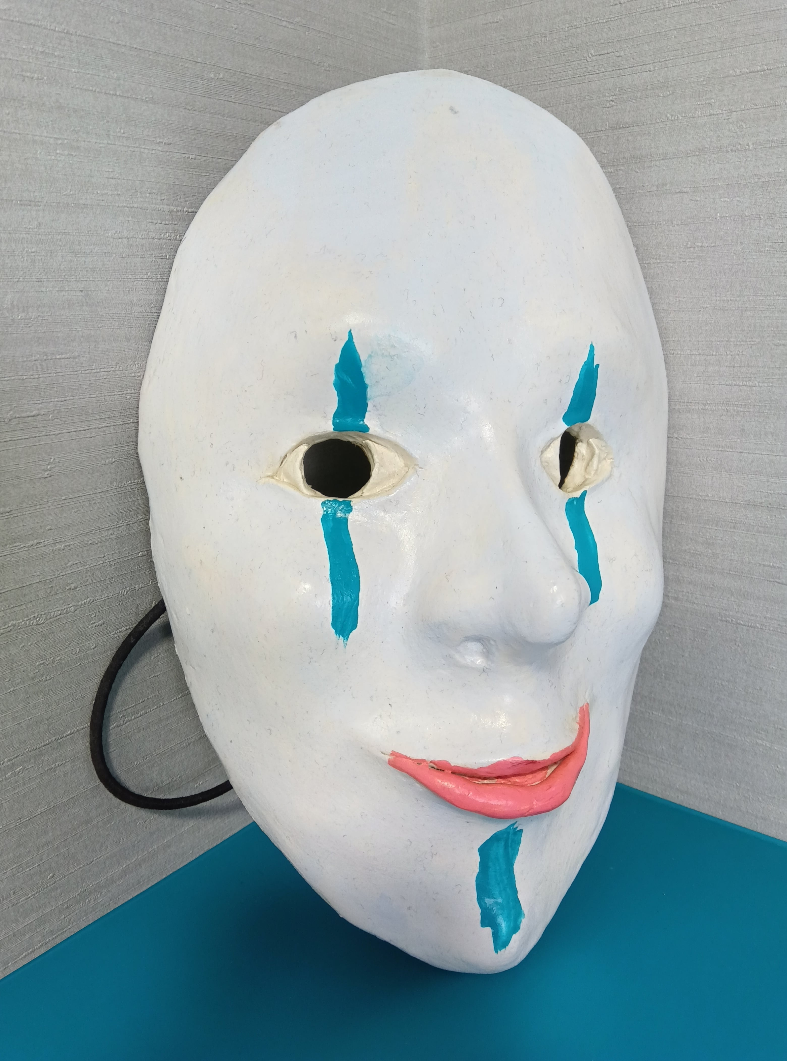 ・段ボールと石粉粘土による土台に絵の具で着色しています。